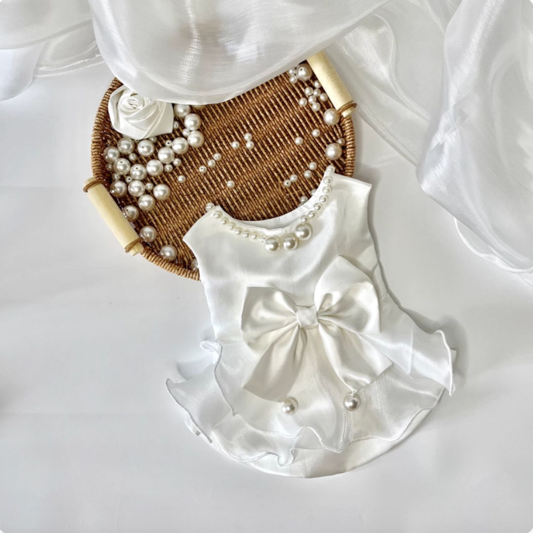 Product Highlights: This matte satin pearl wedding dress can also be worn as a bridesmaid dress for small dogs.
